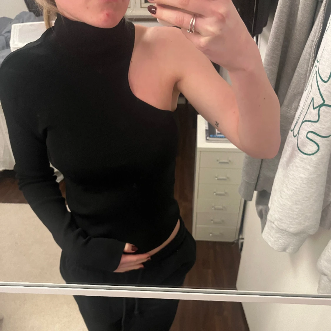 Zara one shoulder topp med lite högre krage 🤍 storlek M men passar mig som vanligtvis har xs/s