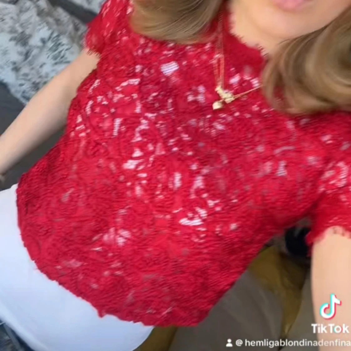 Jättefin röd topp från Zara med dragkedja bak storlek S
