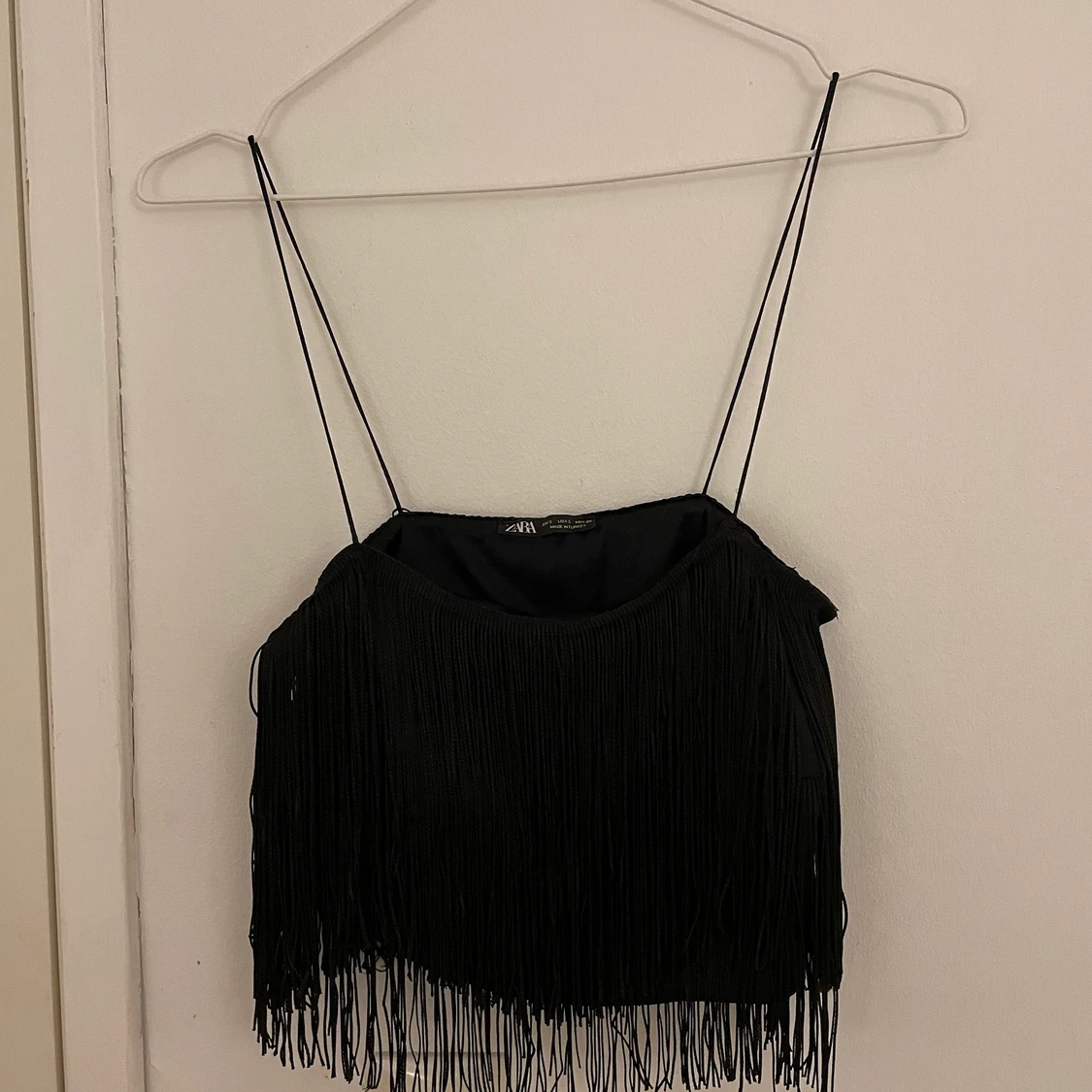 Topp med fransar från Zara, kan användas med eller utan axelband. Storlek S men skulle säga att den är lite liten i storleken.