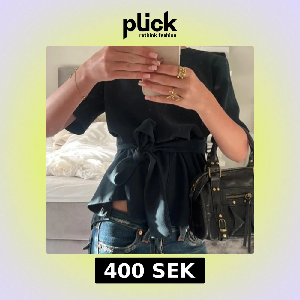 Snygg blus med korta ärmar och ett elegant knytband i midjan. Perfekt för att ge en stilren look💕 köpt här på Plick men aldrig använt❤️