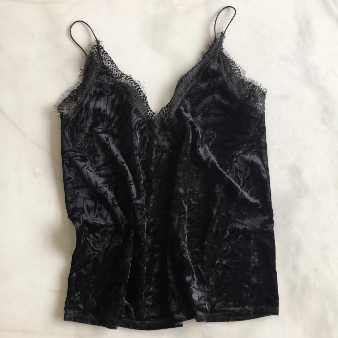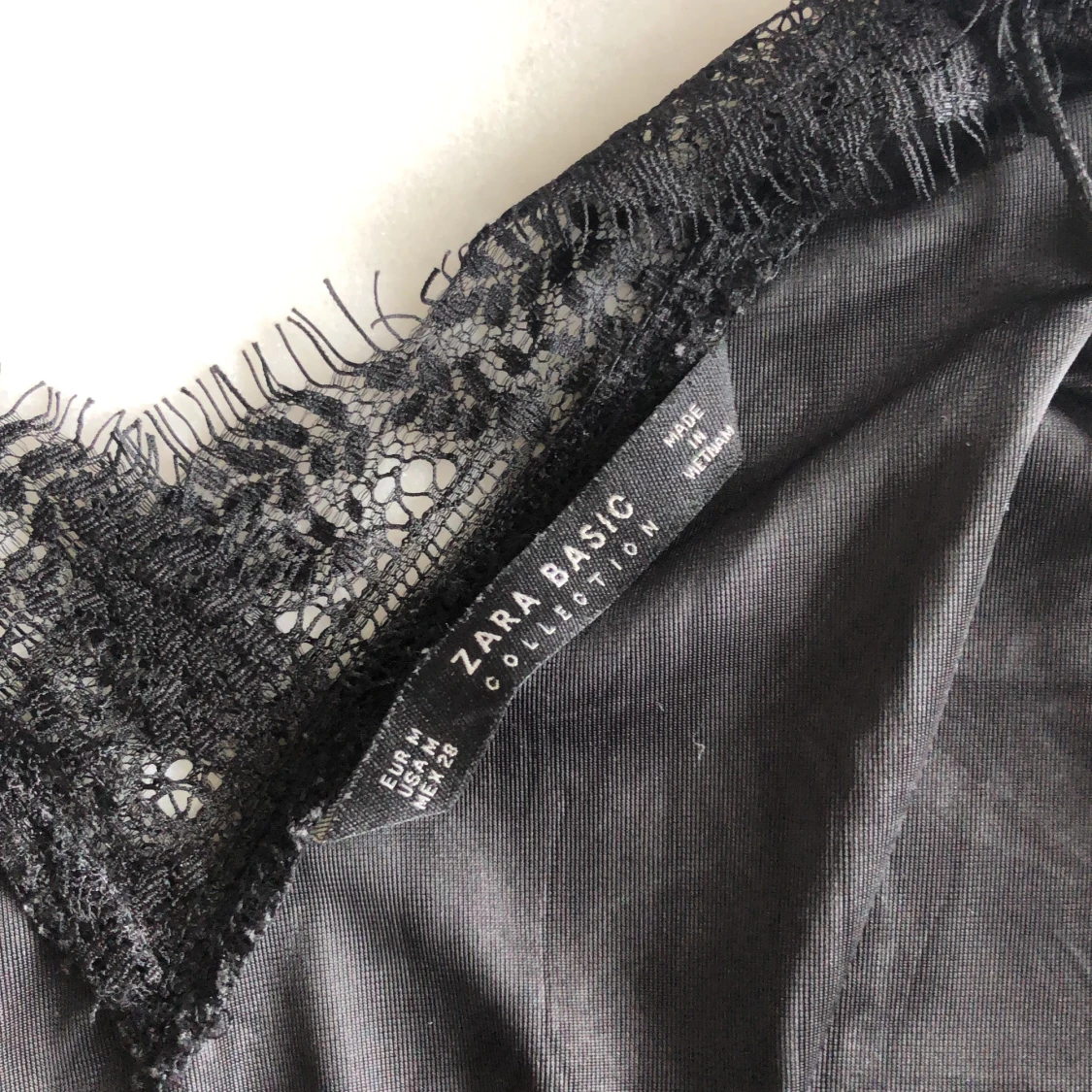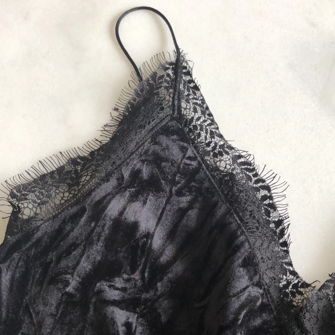 Linne från Zara i sammet med spetskant och tunna axelband. Användt men i fint skick. Frakten är inräknad i priset✨