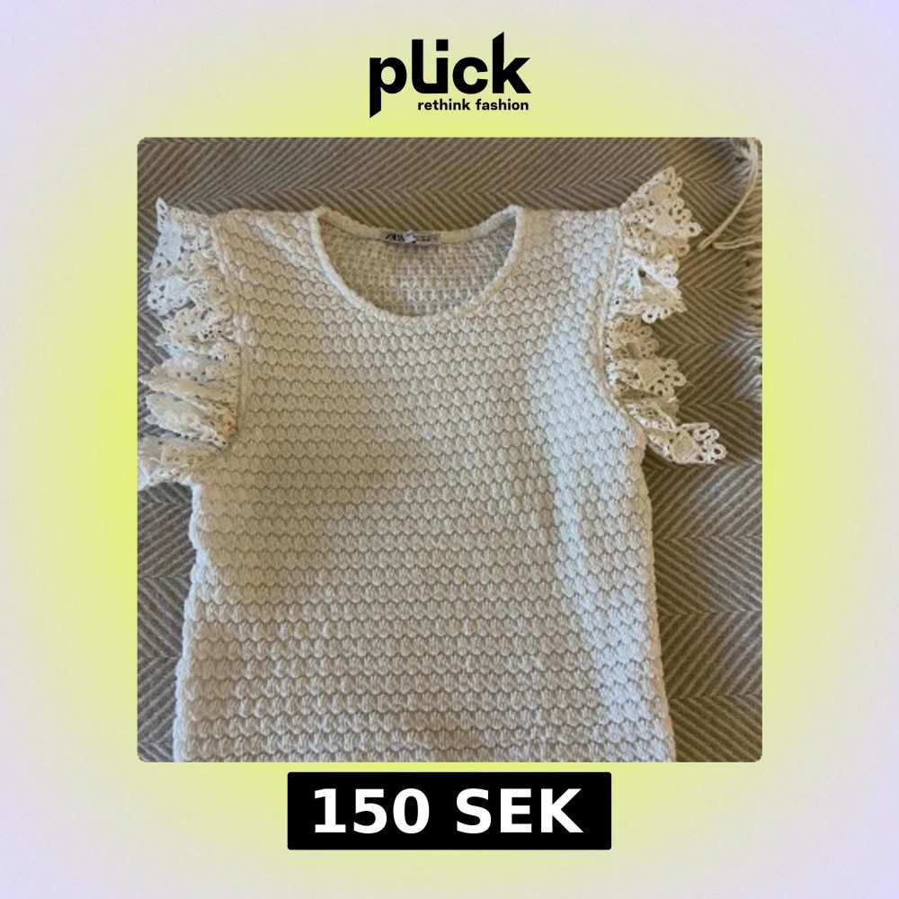 Säljer en söt vit topp från Zara med spetsdetaljer på ärmarna. Toppen har en texturerad yta och är ärmlös med volangdetaljer. Perfekt för en somrig look! Mycket bra skick