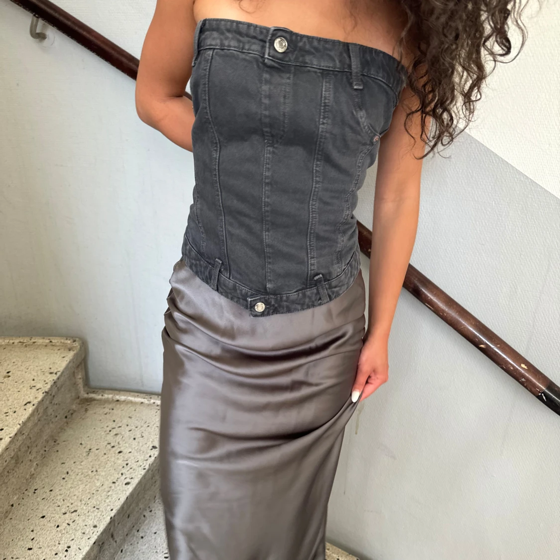 En jeans topp från zara i storlek M, oanvänd.🩶 Kjolen är också till salu, kolla in min profil.