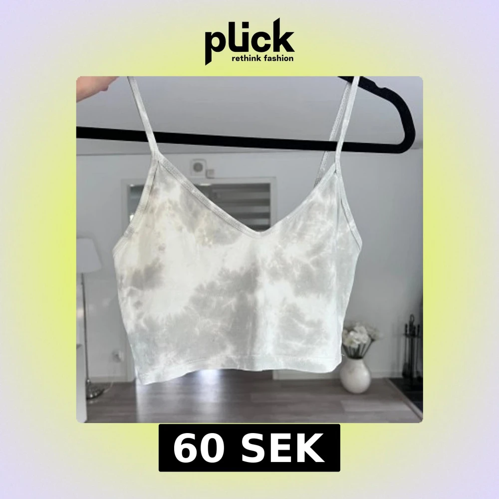Säljer en ljusgrå och vit tie-dye linnetopp från Zara med smala axelband och v-ringning. Toppen är croppad och har en mjuk, stretchig känsla som passar perfekt till jeans eller kjol. Enkel och trendig design som är lätt att matcha. Passar mig bra som normalt bär storlek S ❤️Önskar du veta exakta mått? Tveka inte att höra av dig!