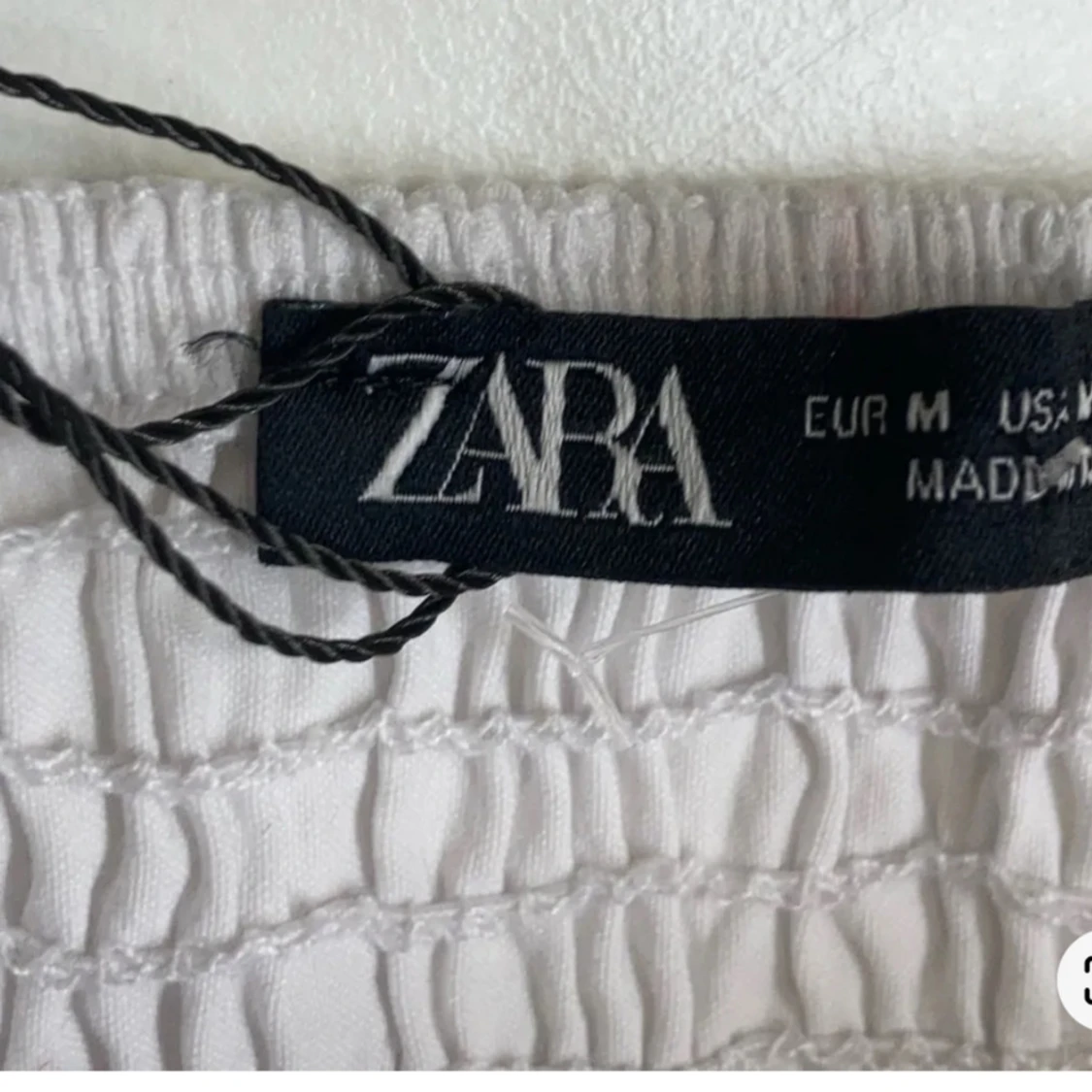 Säljer denna söta vita tubtopp från Zara med volang, säljer då den tyvärr inte kommer till användning💕