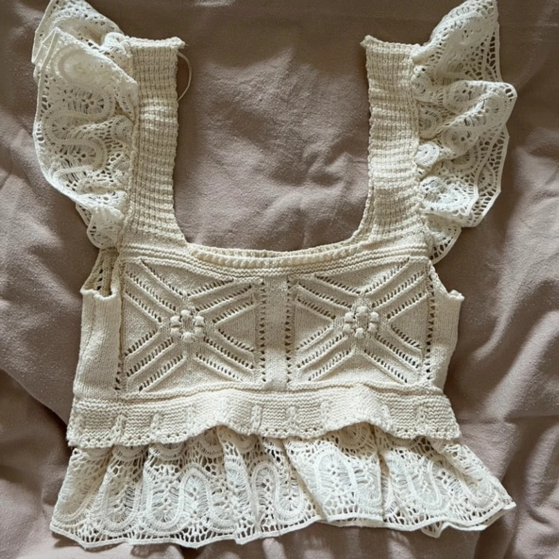 Zara topp jag köpt på Vinted. Har sytt ärmarna kortare då de var för långa på mig som har 75b. Säljer då den inte kommer till använding❤️