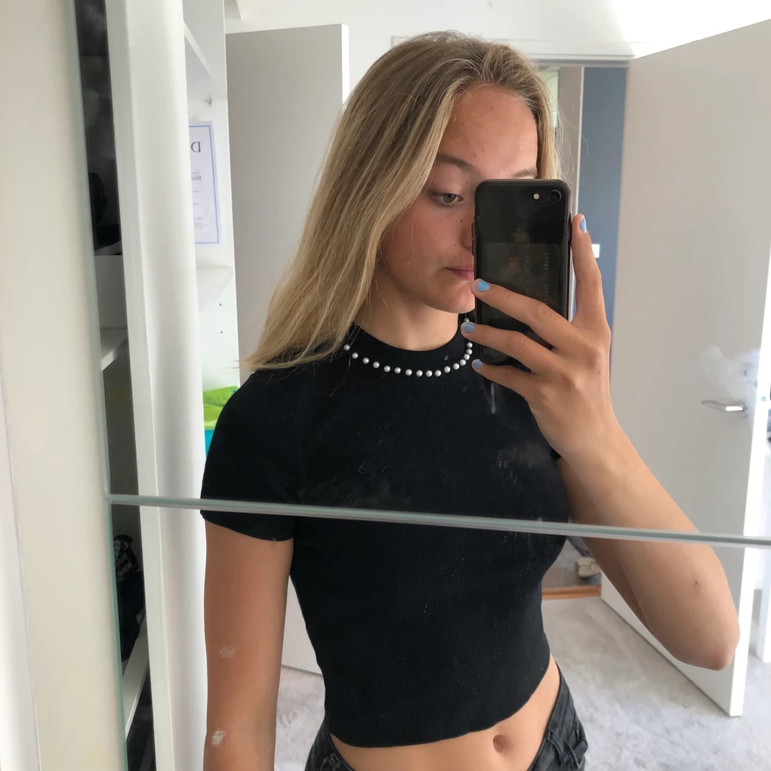 En jätte fin svart topp med pärlor frin zara, lite kroppad. Jätte bra skick🥰 75kr (+frakt)