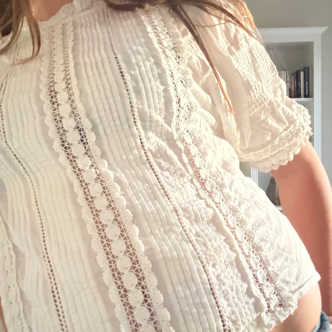 Supersöt vit blus med halsringning och avslappnad passform.💕