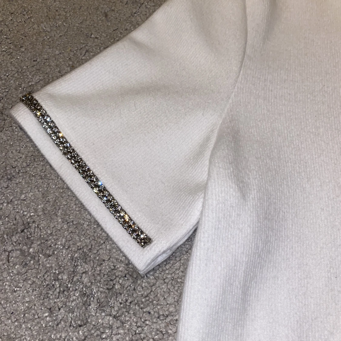Vit tröja från Zara med strass runt ärmarna. Aldrig använd och tröjan säljs inte längre. Lite tjockare tyg så passar bättre inför höst och vinter än för sommaren 💕pris kan vi prata om