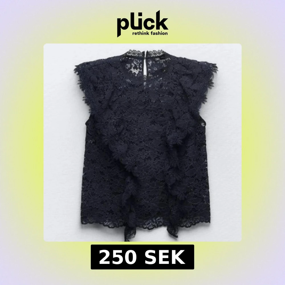 Säljer en elegant mörkblå spetsblus från Zara. Blusen är ärmlös och har vackra spetsdetaljer över hela. JÄTTEFIN t fest osv. Väldigt eftertraktad o slutsåld!