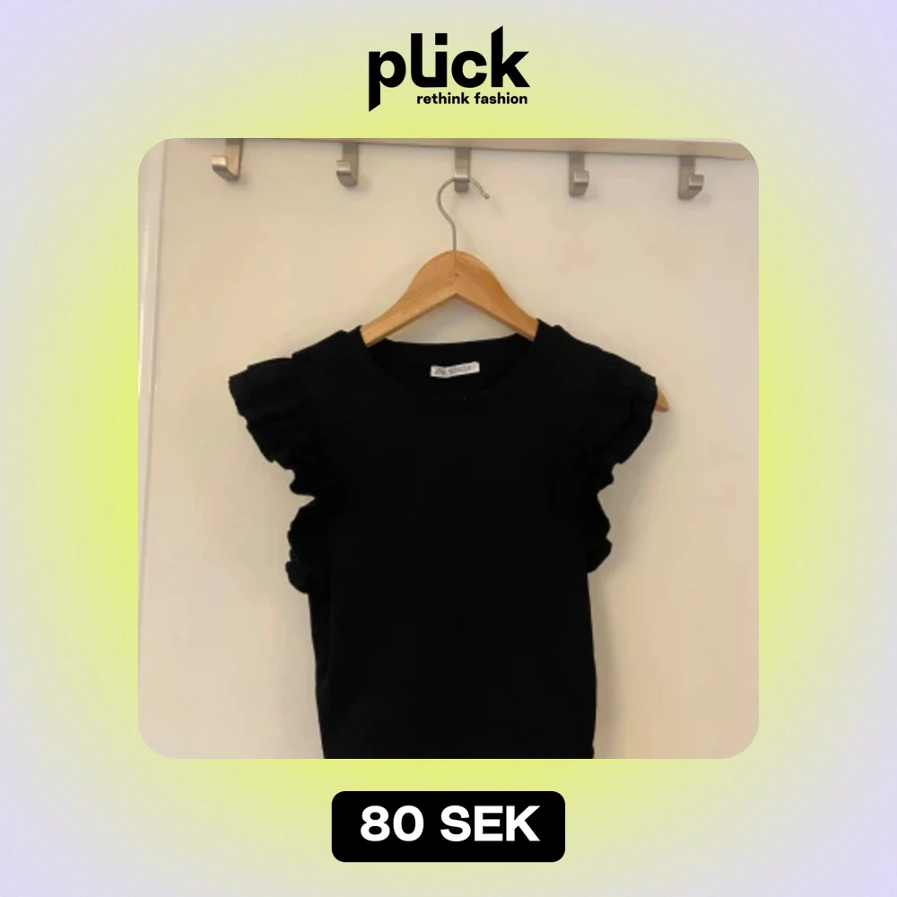 Säljer min svarta volang topp från Zara då jag aldrig använder den. Bra skick! Storlek M men liten i storleken