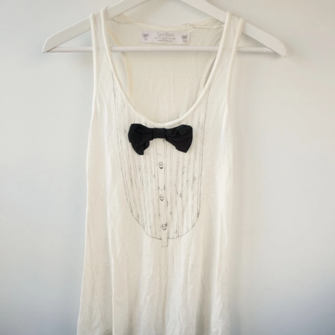 Vitt långt linne från Zara basic med tryck (knappar) och fluga i tyg storlek s. Bara att fråga om ni undrar något! Kan mötas upp på söder Frakt 30kr