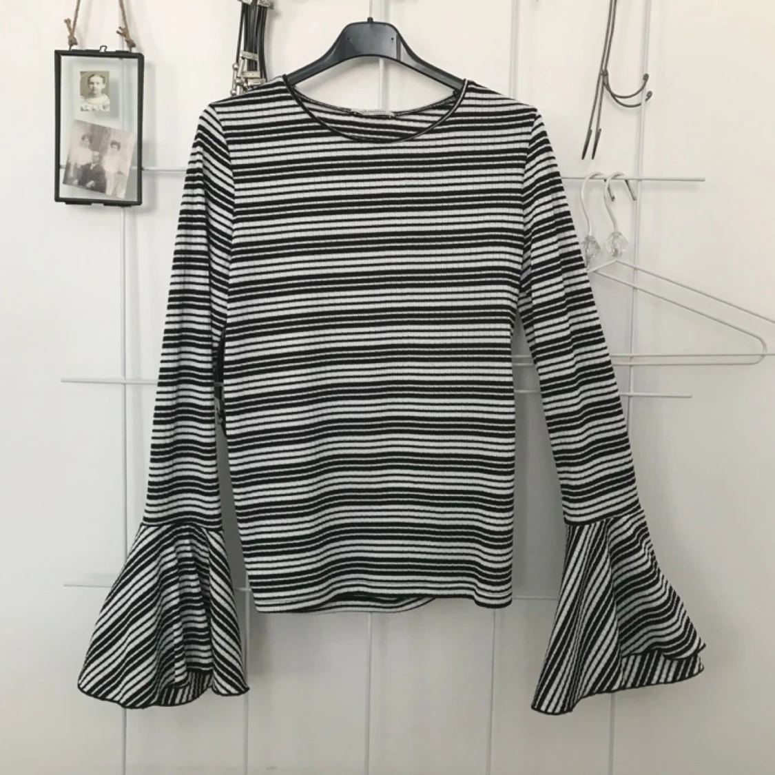 Randig ribbad tröja med volang vid ärmsluten, inköpt på Zara. Superskön och sparsamt använd! Passar en S/M