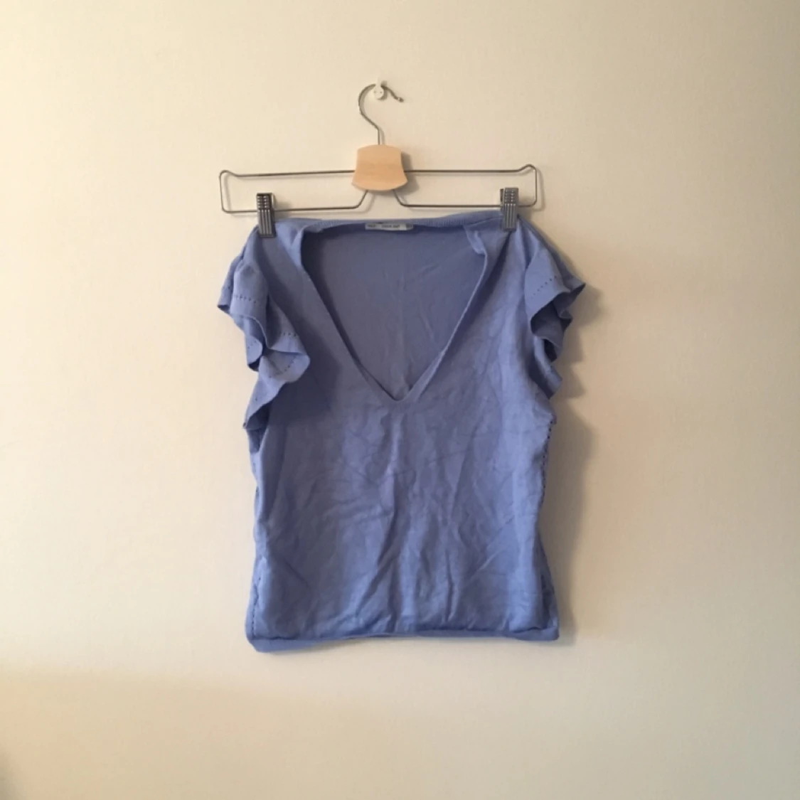 En (här skrynklig..) t-shirt med volangärmar. Använd en gång. Säljs på plats i Uppsala, alternativt skickas.