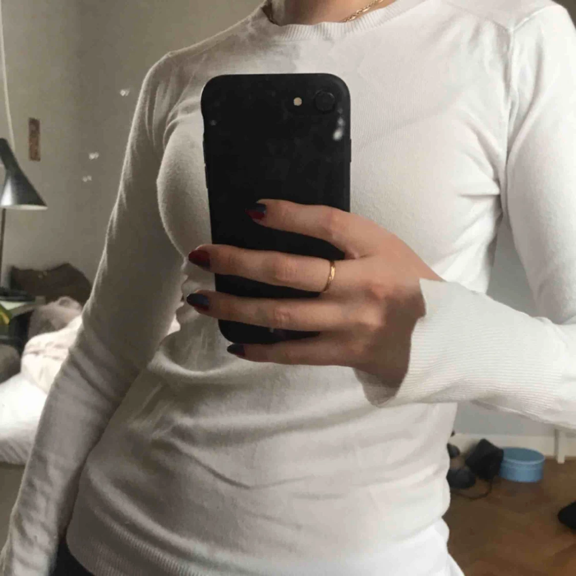 Vit långärmad tröja från zara! Slits i armarna. Sitter tajt och snyggt, passar XS-S💕 köpare står för frakt!