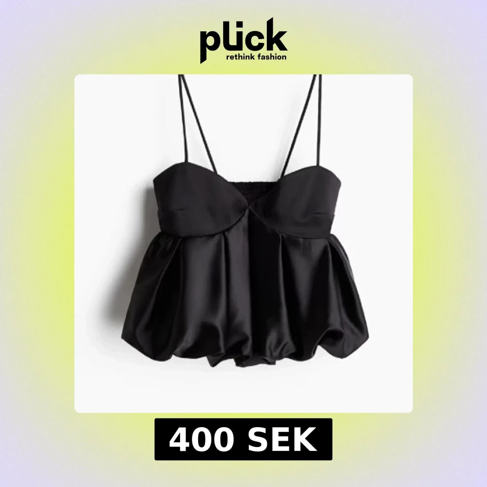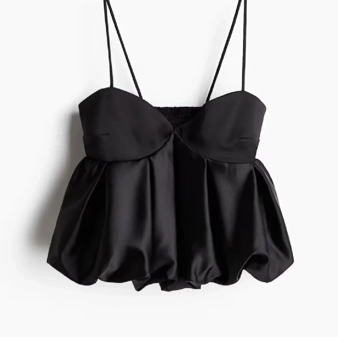 Supersnygg svart linnetopp i glansigt satinmaterial med tunna axelband och voluminös, bubblig nederdel. Toppen har en feminin siluett och är perfekt för att lyfta vilken outfit som helst. Pris kan diskuteras!! Går ej att få tag i längre