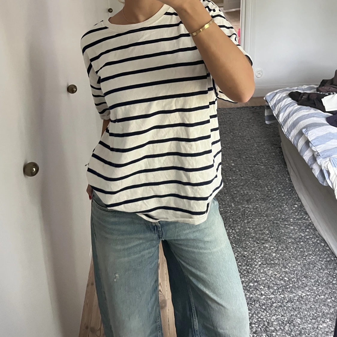 Randig lite tjockare t-shirt från zara, storlek xl så sitter asnajs oversized!!