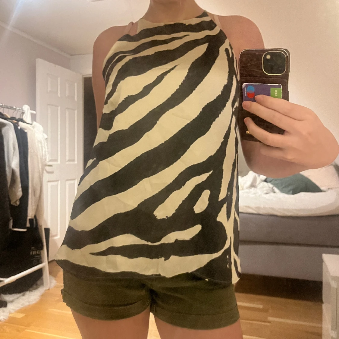 Jättefin zebra topp i bra skick❤️ den svart och beige❤️ har en liten fläck på insidan men är inget som syns🌸