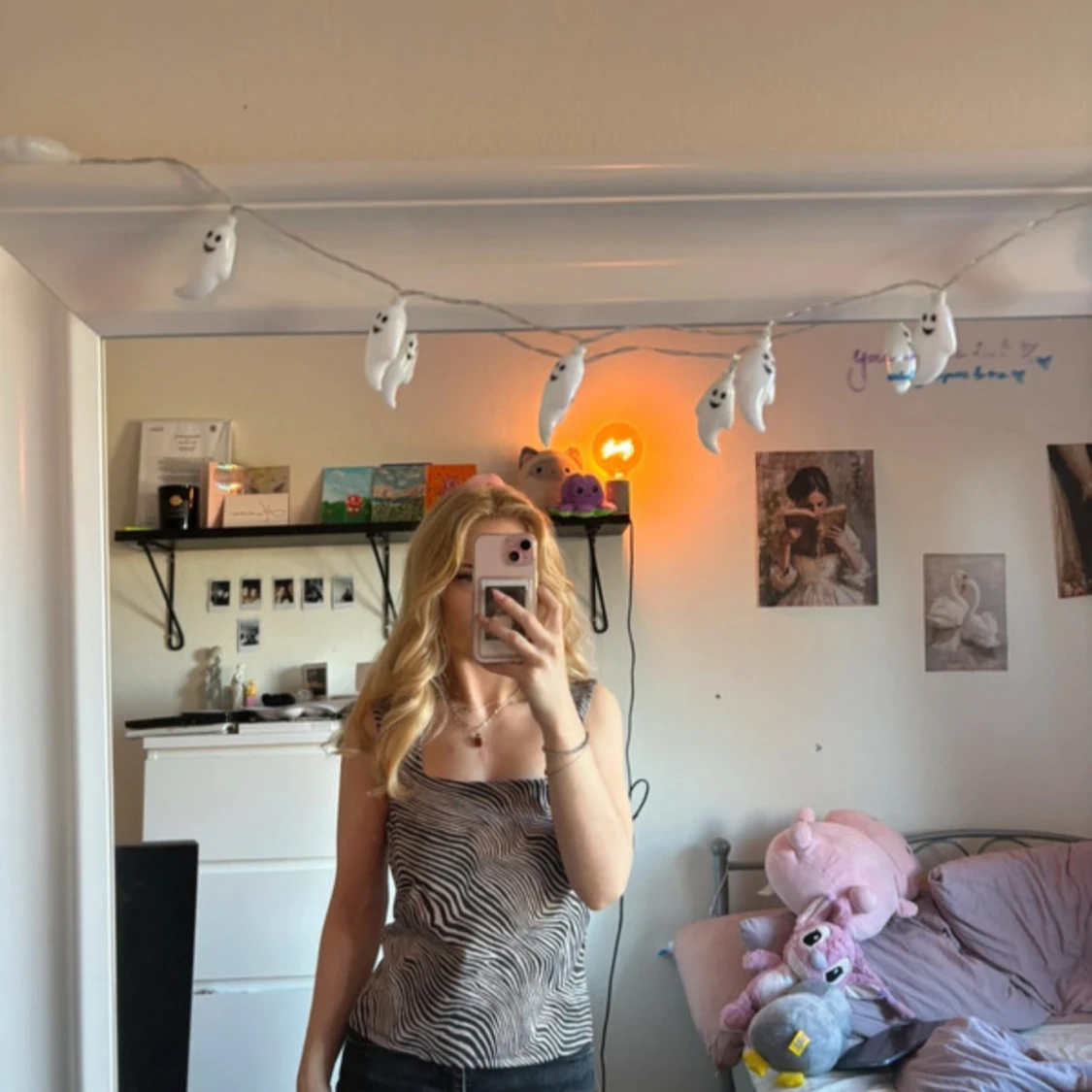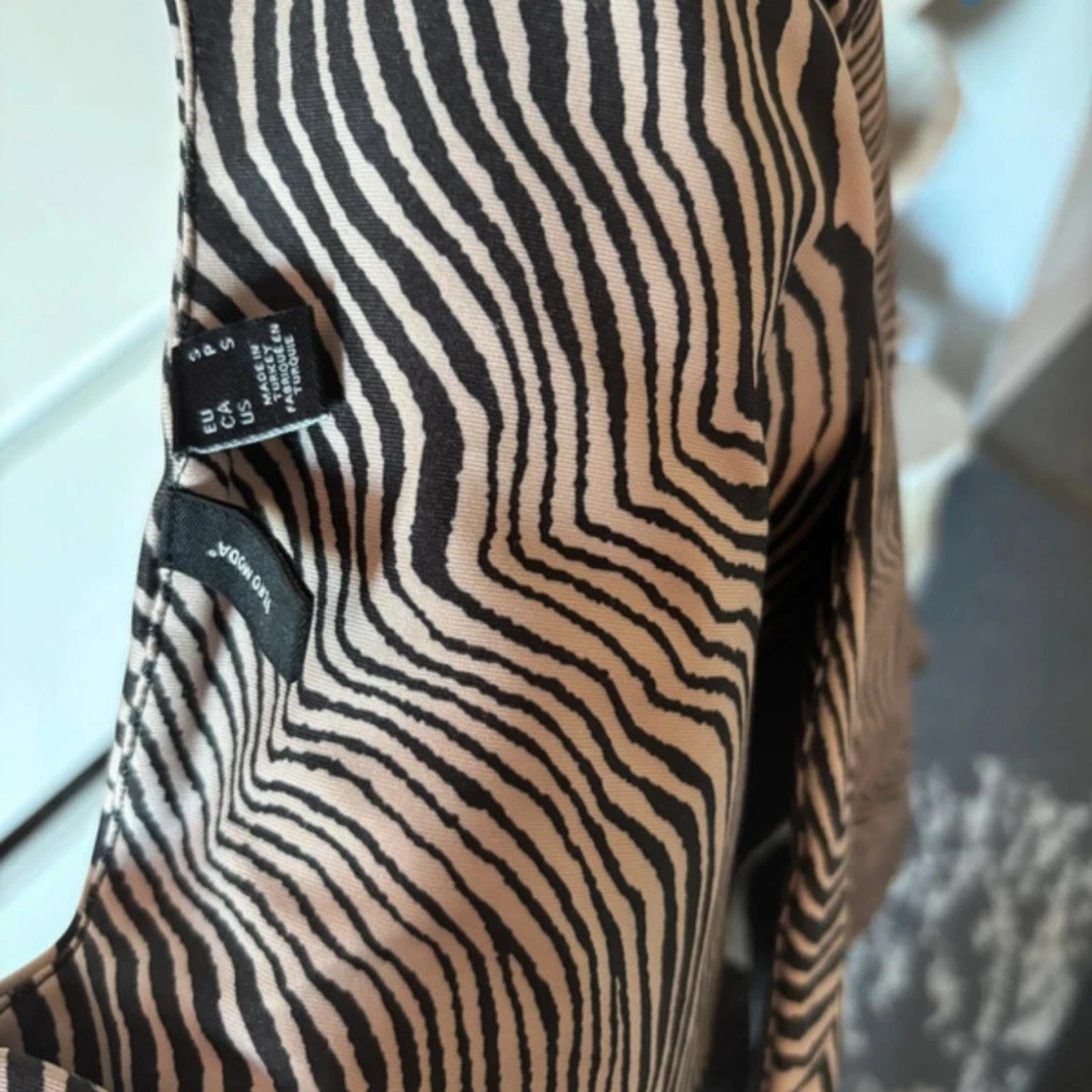 Säljer en snygg zebramönstrad linnetopp från Vero Moda i svart och beige. Toppen är ärmlös med raka axelband och har en loose passform. Perfekt för dig som vill sticka ut med ett coolt mönster och mjukt material.