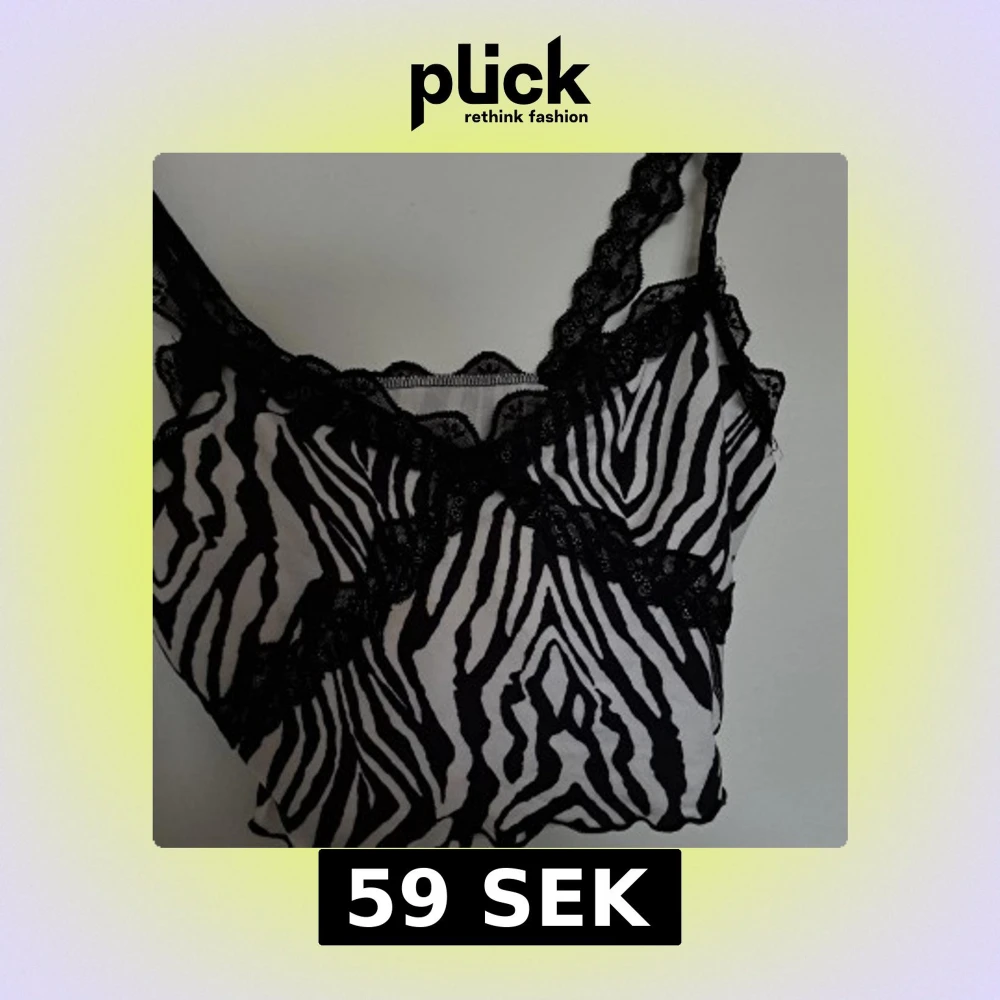 Säljer en snygg zebramönstrad linnetopp med svarta spetsdetaljer längs urringning och axelband. Toppen är vit och svart, har smala axelband och är perfekt för sommaren! Materialet känns mjukt och följsamt.🤍