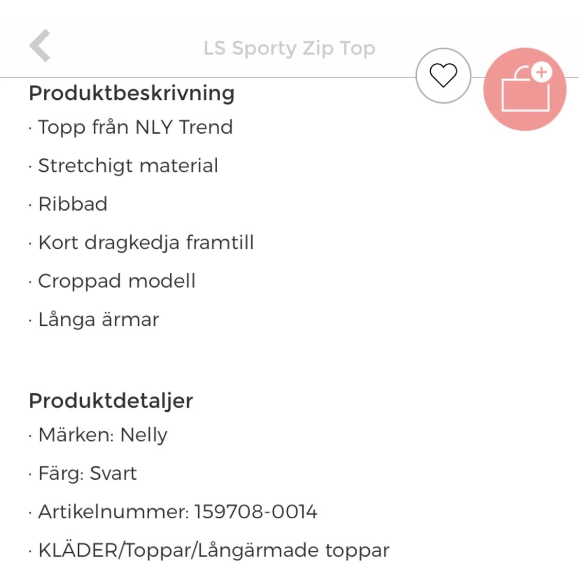 Topp från Nelly med snygg dragkedjedetalj, stretchiga material och super fin tröja som man både kan klä upp eller ha när man tränar ☺️ endast använd 1 gång