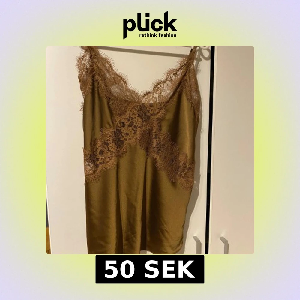Säljer ett elegant brunt linne från Only med vackra spetsdetaljer. Linnet är tillverkat i polyester och har en feminin design med spets längs halsringningen och axelbanden.