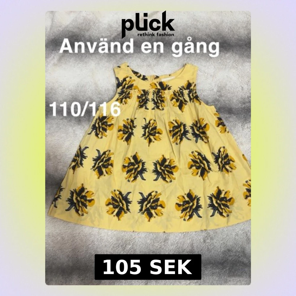 Söt gul topp med stora blommiga mönster i svart och gult. Ärmlös modell med rund hals och luftig passform, perfekt för varma dagar. 🌸 Använd en gång. Storlek 110/116
