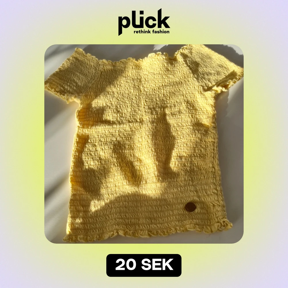Säljer en söt gul ribbad topp i storlek 134/140. Materialet är stretchigt, så passar för lite större storkekar. Har korta ärmar och ett gulligt märke med ett leende ansikte. Perfekt för sommardagar eller som en färgglad detalj i garderoben. Toppen är i bra skick och redo för nya äventyr! 🌞