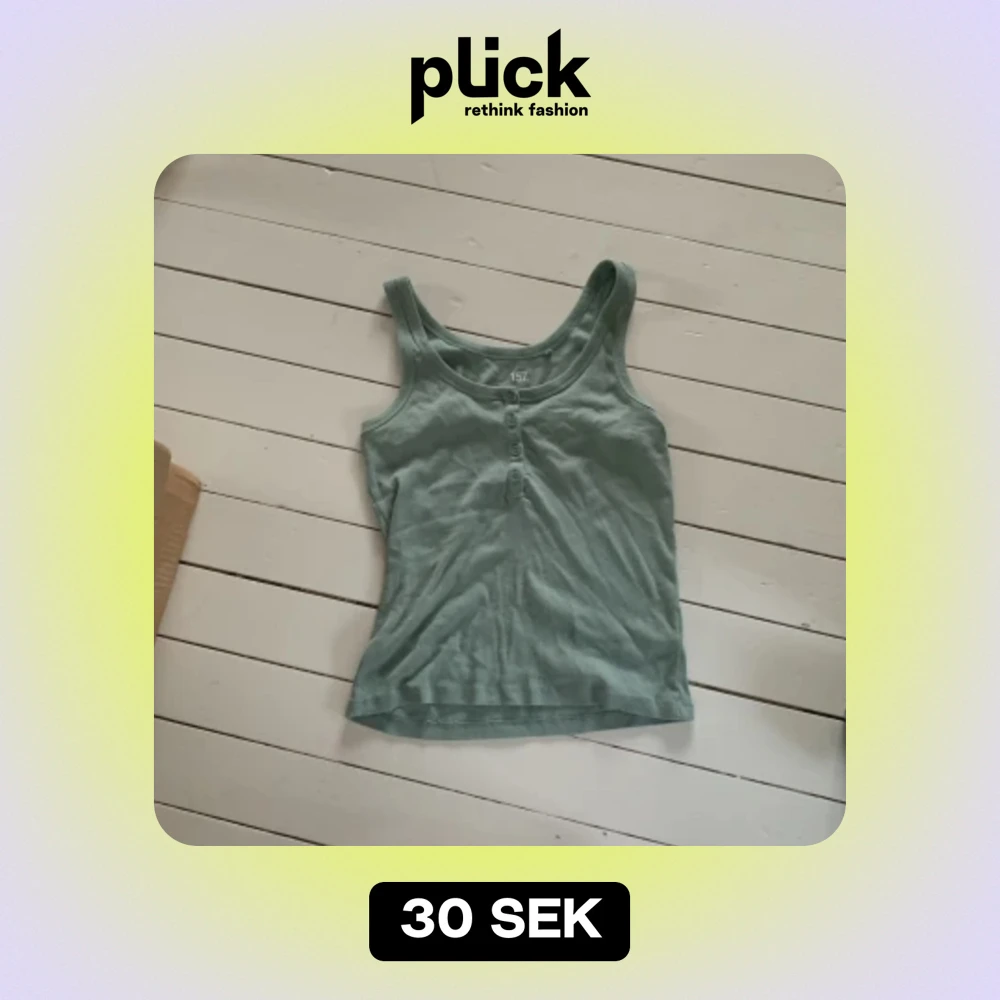 Grön ribbad linnetopp - Snygg grön ribbad linnetopp med breda axelband och rundad halsringning. Perfekt för varma dagar och enkel att matcha med jeans eller kjol.