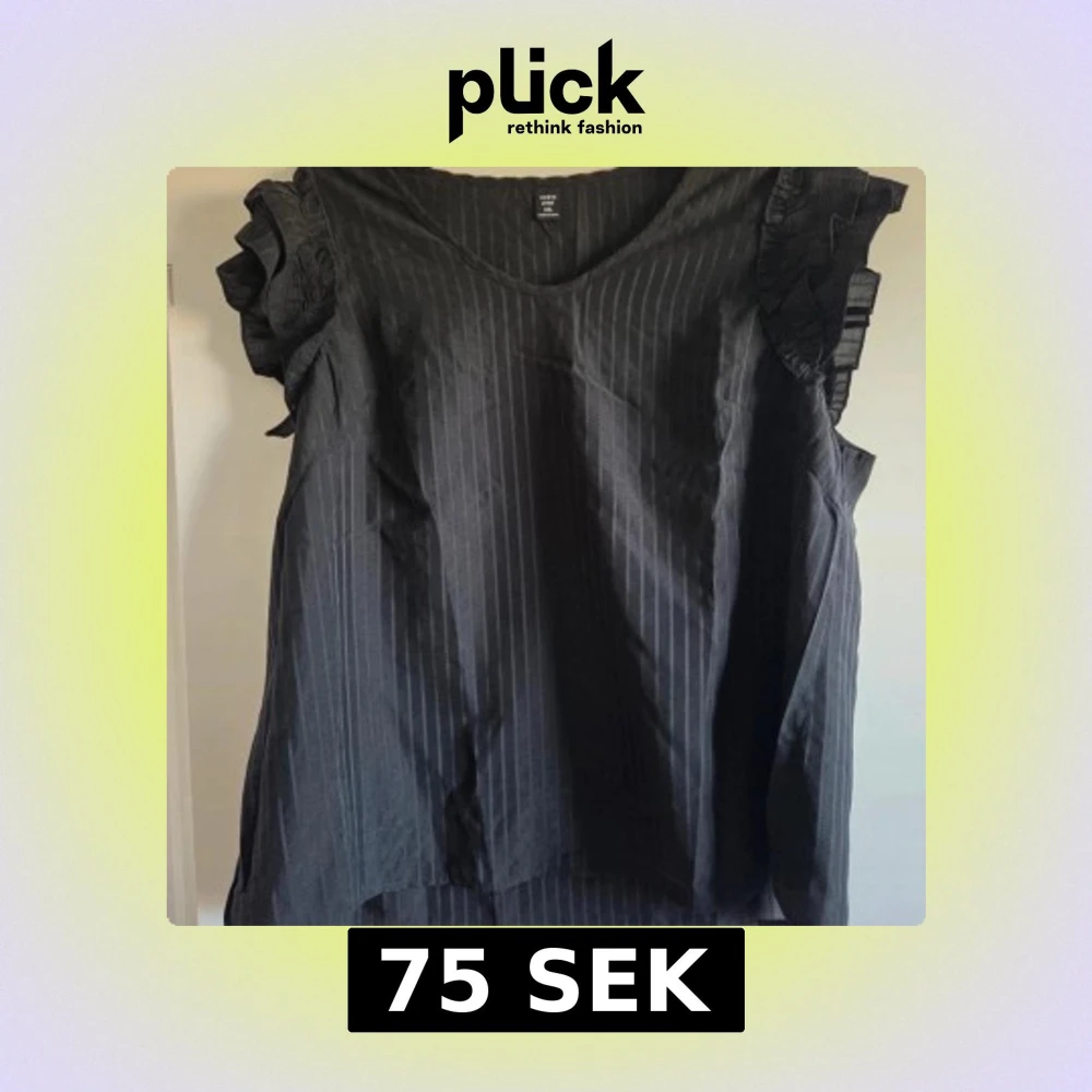 Svart blus från Shein Curve med volangdetaljer på ärmarna. Blusen har v-ringad hals och är ärmlös med breda axelpartier. Materialet känns lätt och luftigt, perfekt för dig som gillar en chill och stilren look.