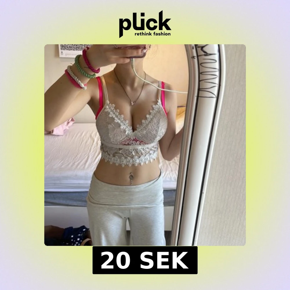 20kr Säljer en vit spets bralette med fina blommiga detaljer och justerbara axelband. Toppen är ärmlös och har en croppad passform med vacker spetskant nedtill. Perfekt för lager-på-lager eller som den är.