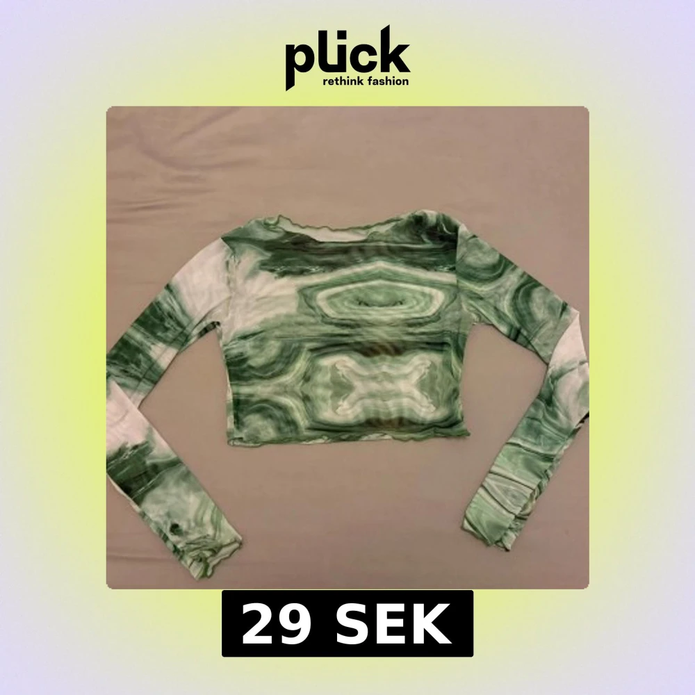 Snygg croppad topp med ett unikt grönt och vitt mönster i mesh. Toppen har långa ärmar och en tight passform, perfekt för att sticka ut i mängden.