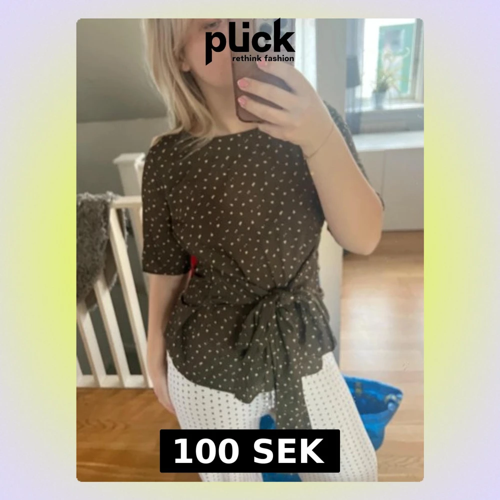 Snygg mörk grön blus (ser mer brun ut på bild) med små leopard mönster och knyt i midjan. Blusen har korta ärmar och rund halsringning. Perfekt för dig som gillar en feminin och trendig look. Aldrig använd