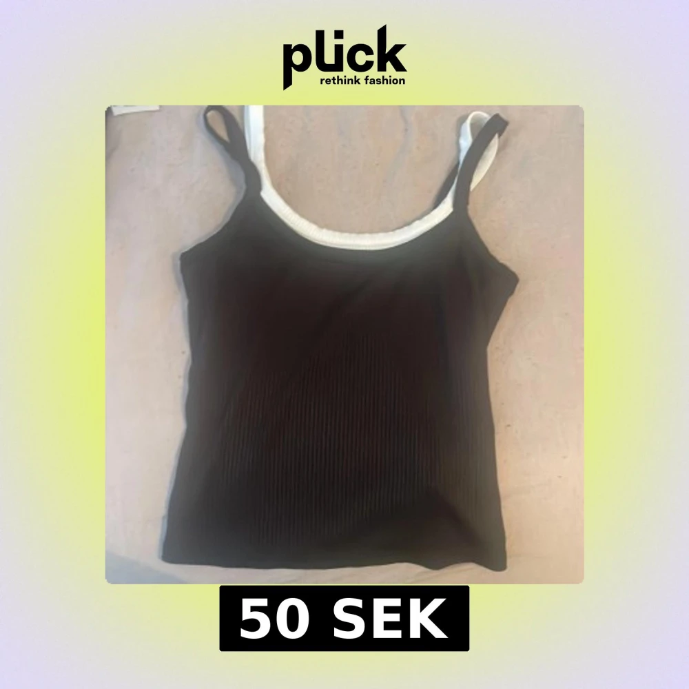 Snygg svart ribbad linnetopp med kontrasterande vita axelband och kant. Perfekt för sommardagar och enkel att matcha med jeans eller kjol. Toppens ribbade material ger en trendig känsla.