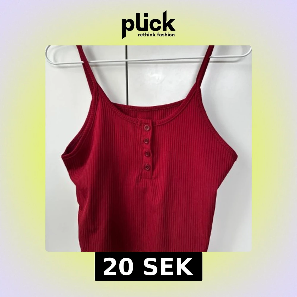 Säljer en snygg röd ribbad linnetopp med knappar framtill. Perfekt för varma dagar eller som ett lager under en jacka. Den har smala axelband och en bekväm passform.