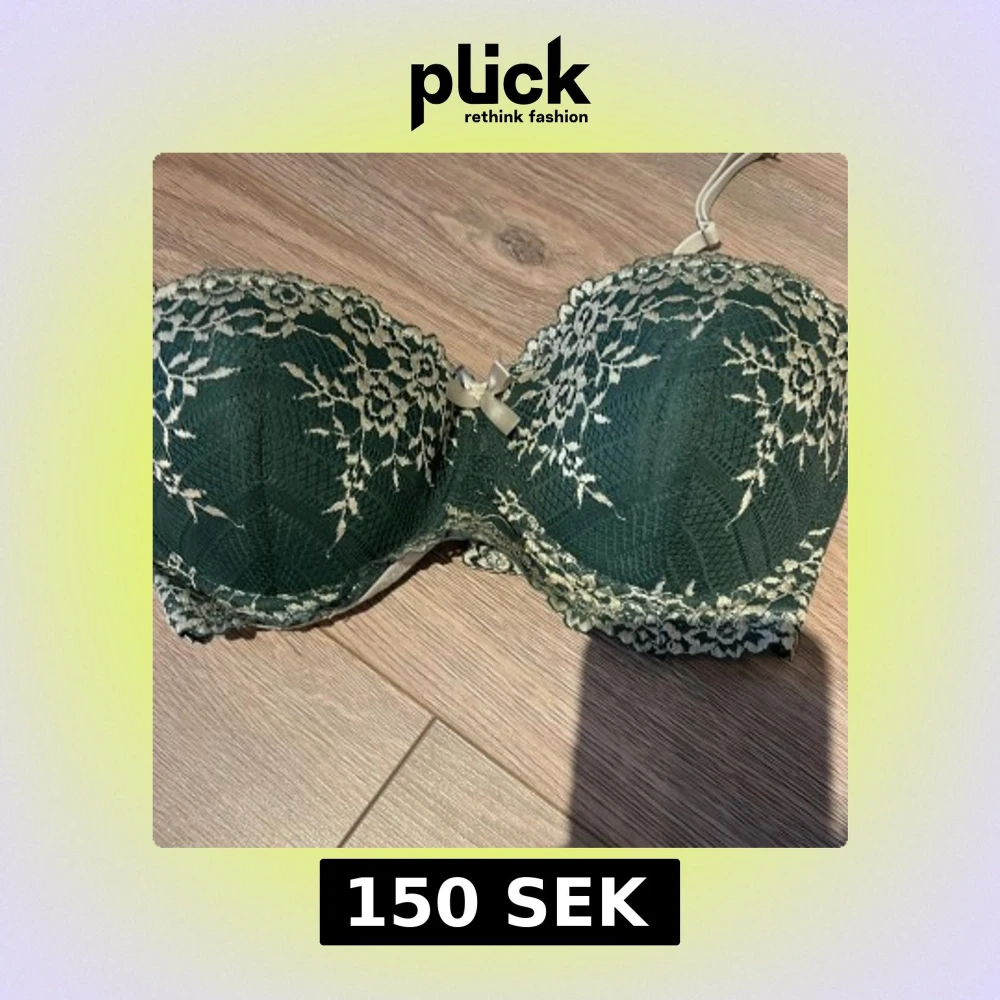 Snygg grön bh med vacker spetsdetalj och en söt rosett framtill. Den har vadderade kupor och justerbara axelband för bästa passform. Perfekt för att känna sig extra fin!