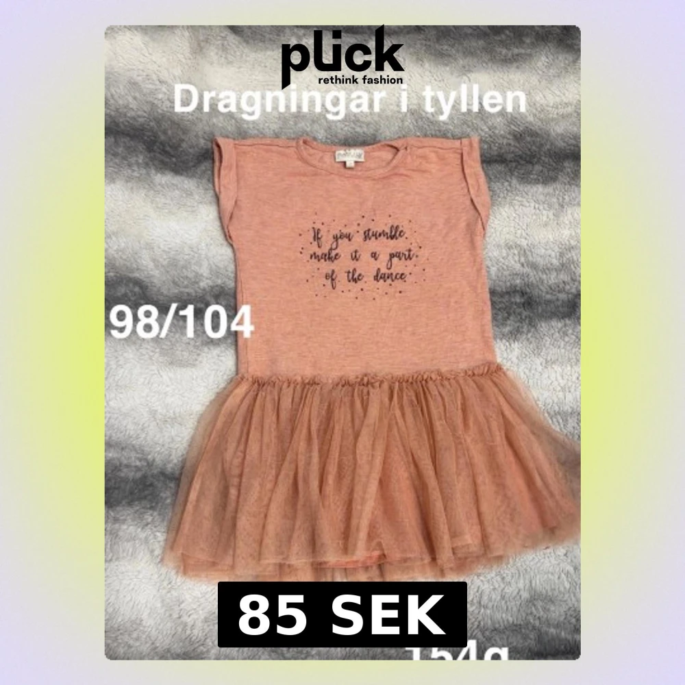 Supersöt persikofärgad tunika från POMPdeLUX med tryck på bröstet och fluffig tyllkjol. Toppen har korta ärmar och volangdetalj vid axlarna. Perfekt för dig som gillar dans och vill ha något extra gulligt.🌸 Dragningar i tyllen. Storlek 98/104