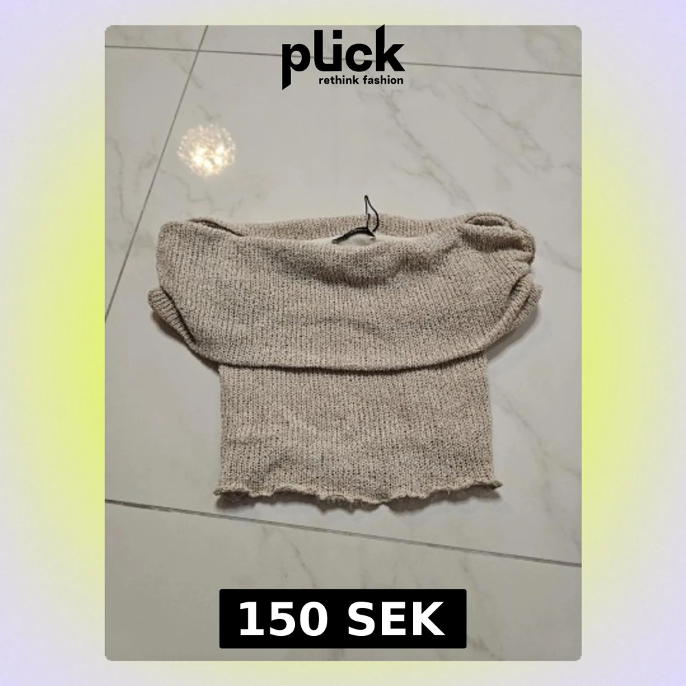 Trendig beige offshoulder topp från Bershka i stickad kvalitet. Toppen är ärmlös och har en croppad passform med vågig kant nedtill. Perfekt för dig som gillar en enkel men snygg stil.