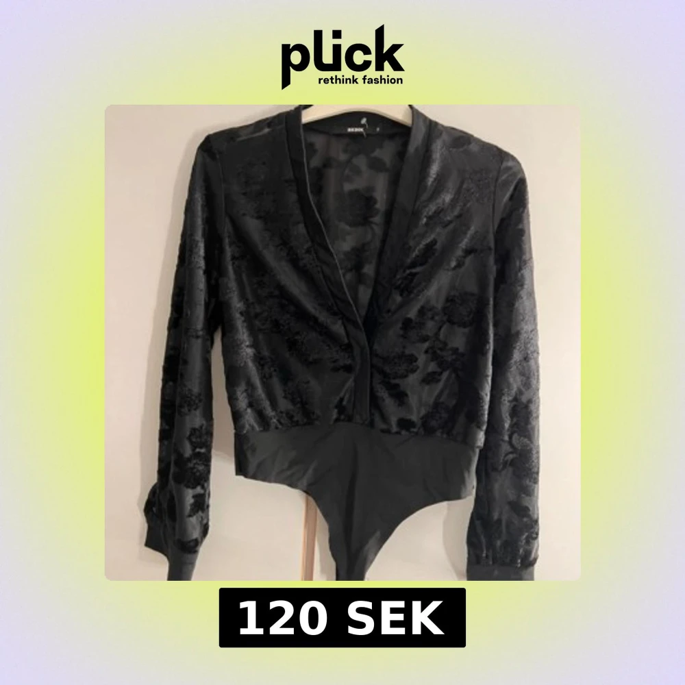 Snygg svart bodysuit från BIK BOK med blommigt sammetmönster och djup v-ringning. Långärmad modell med transparent mesh och täckt nederdel. Perfekt för dig som vill ha en statement-top med coola detaljer och elegant vibe.