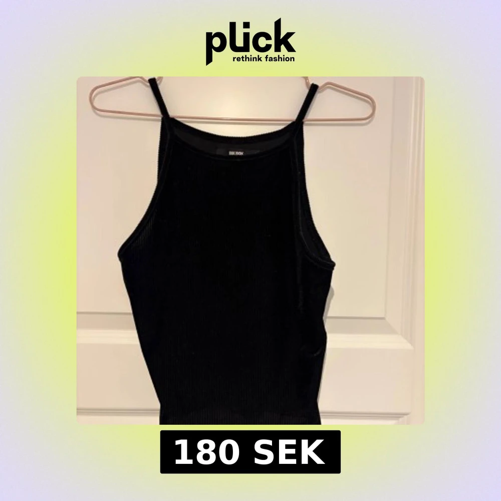 Svart ribbad topp - Svart topp/linne som är ribbat i storlek xs från bikbok. Nästan aldrig använt