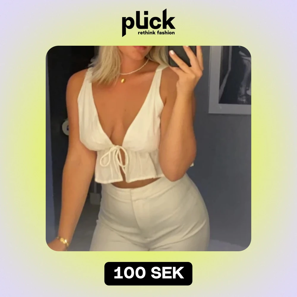 Jättesöt topp i linnematerial som man knyter fram till. Stl S/M men passar fler storlekar eftersom man knyter den själv.