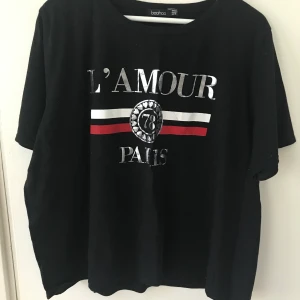 Svart kortare t-shirt med tryck✨ Från Boohoo Litet rött streck på trycket✨ Strl 50