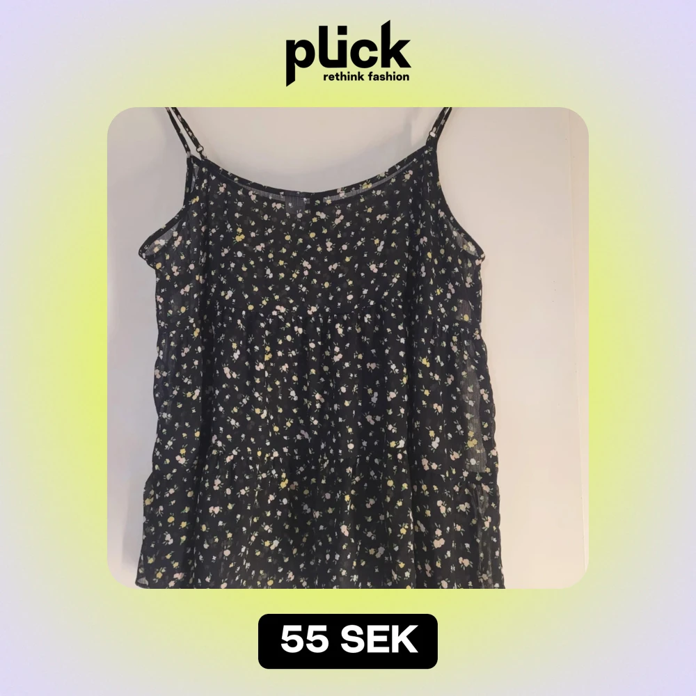 Säljer ett sött blommigt linne från Divided i storlek M. Det är svart med små vita och gula blommor, perfekt för sommardagar. Linnet har smala axelband och en luftig passform. Superfint att matcha med jeans eller shorts!