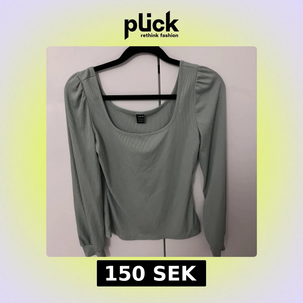 Snygg grön ribbad topp från Shein med långa ärmar och fyrkantig halsringning. Perfekt för en stilren look.