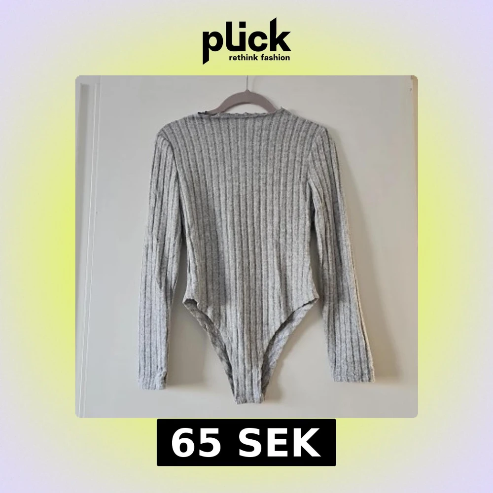 Säljer en stilren grå ribbad bodysuit från Shein i storlek petite S. Den har långa ärmar och är tillverkad i en mjuk polyesterblandning. Perfekt för lager-på-lager eller att bära som den är.