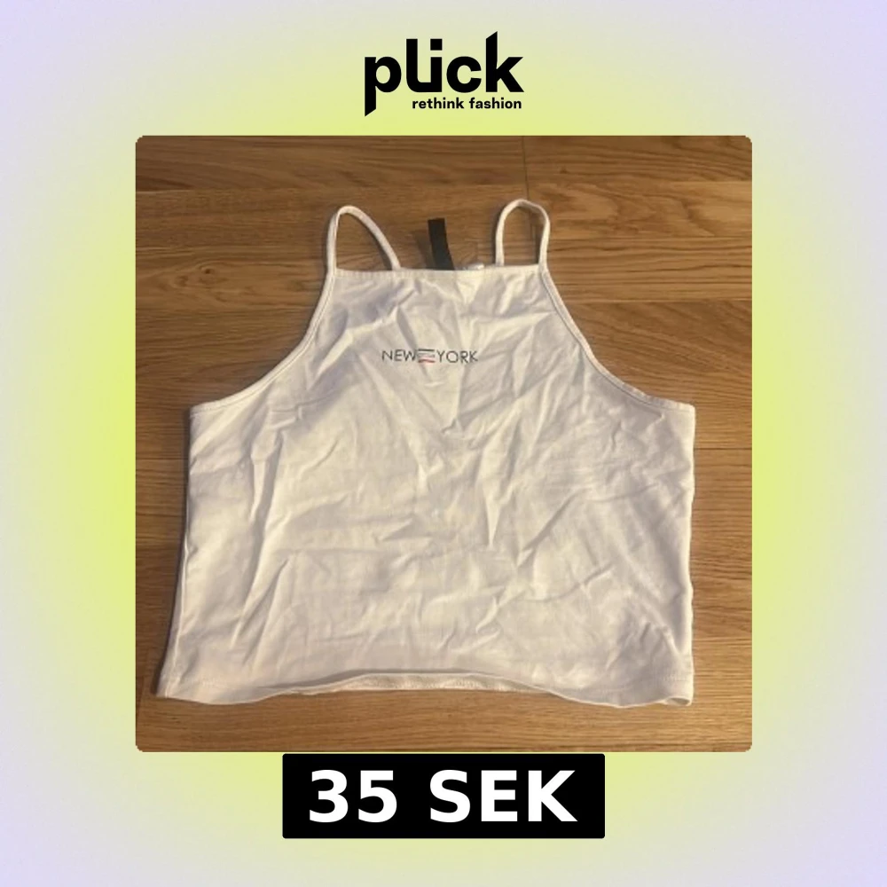 Säljer en vit croppad linnetopp från Divided med tunna axelband och trycket 'New York' framtill. Perfekt för varma dagar och enkel att matcha med jeans eller kjol.