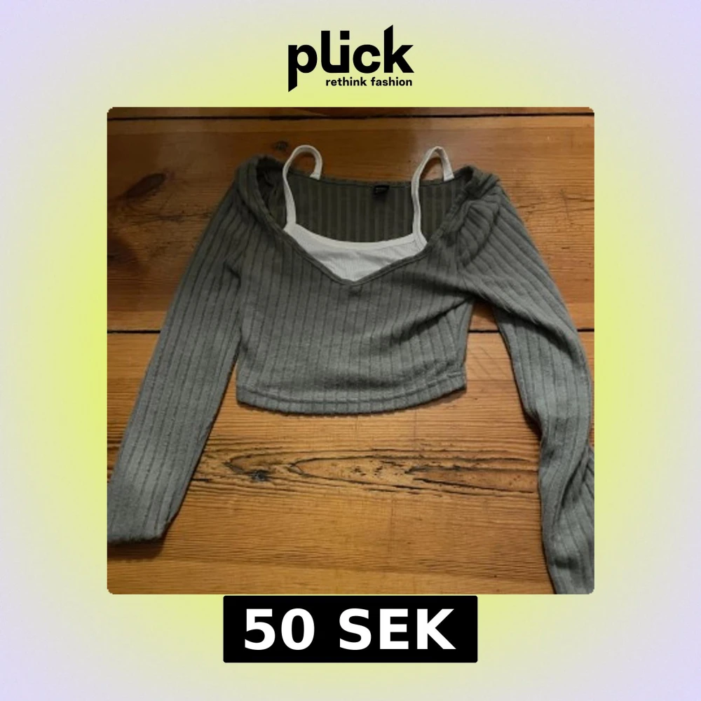 Säljer en grön ribbad topp från Shein i storlek XS. Toppen har en v-ringad design och långa ärmar, perfekt för en stilren look. Den är croppad och passar bra till både jeans och kjol. Den är oanvänd. Priset kan diskuteras