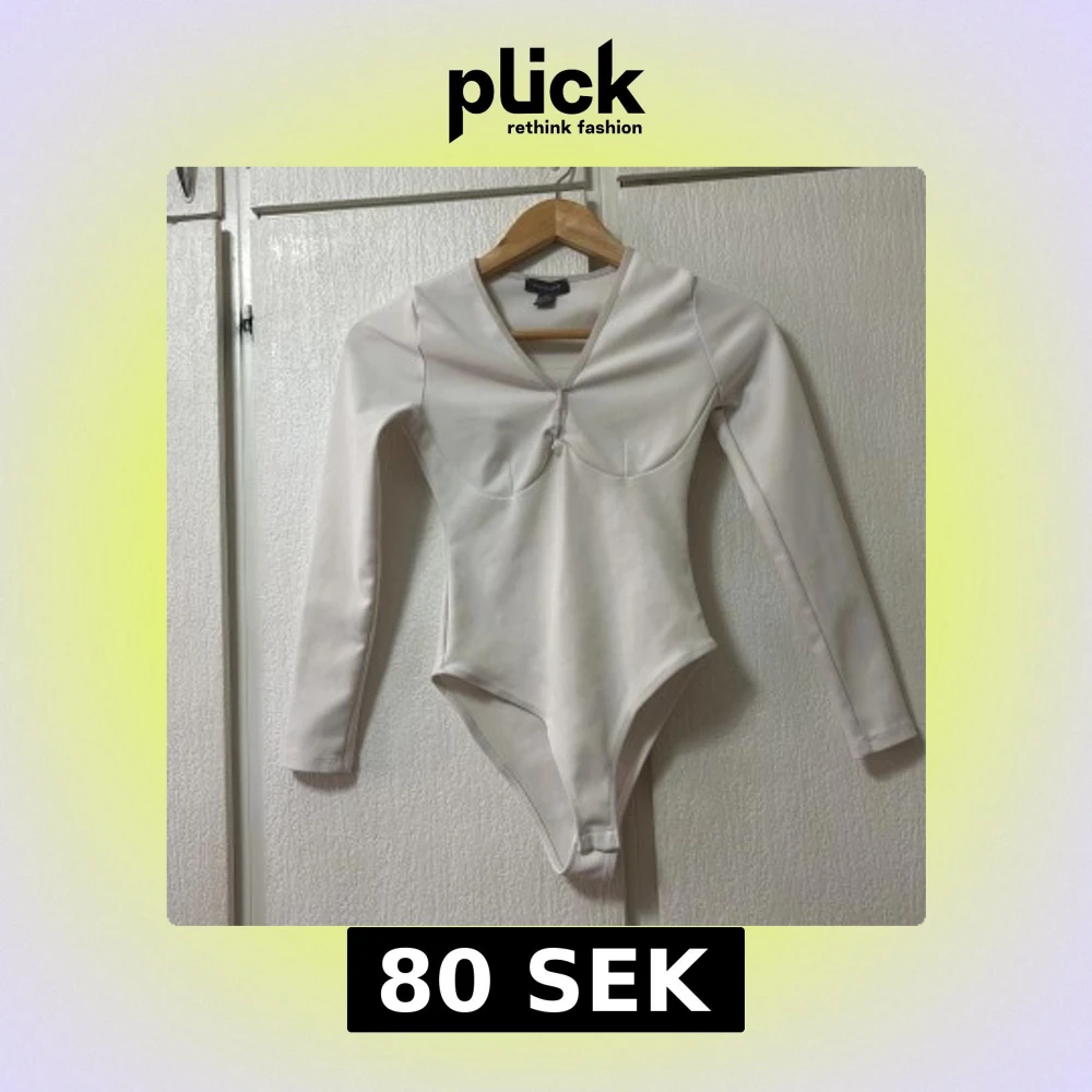 Säljer en stilren vit långärmad bodysuit från Primark. Den har en v-ringad design med en liten knutdetalj framtill. Perfekt för att skapa en elegant look. Tillverkad i Turkiet.