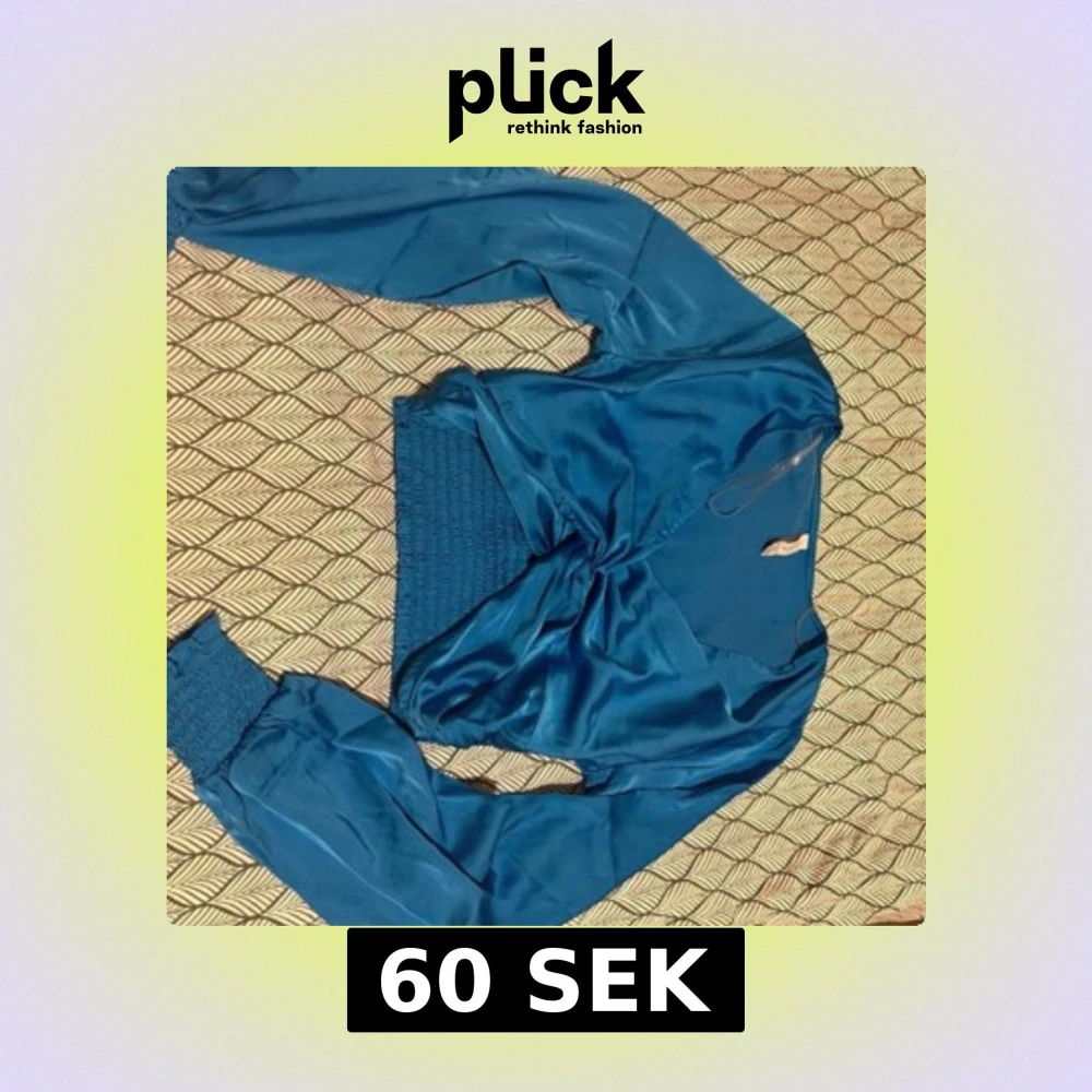 Blå omlottopp från Amisu XS - Säljer en snygg blå omlottopp från Amisu i storlek XS. Toppen har långa puffärmar med breda smockade muddar och en croppad passform. Materialet är glansigt och känns lyxigt, perfekt för att sticka ut. Omlott-designen ger en cool v-ringad look.