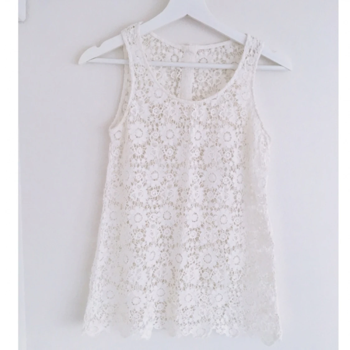 Vitt virkat linne från Forever21, fina knappar bak
